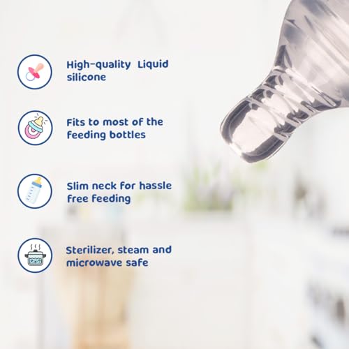 BUMTUM Nurture Anti Colic Teat/Nipple for Narrow Neck Bottle |4pcs- Large Size |Bottle Nipple for Baby 6m+ | Soft & Flexible Silicone| Leak Proof Bpa Free