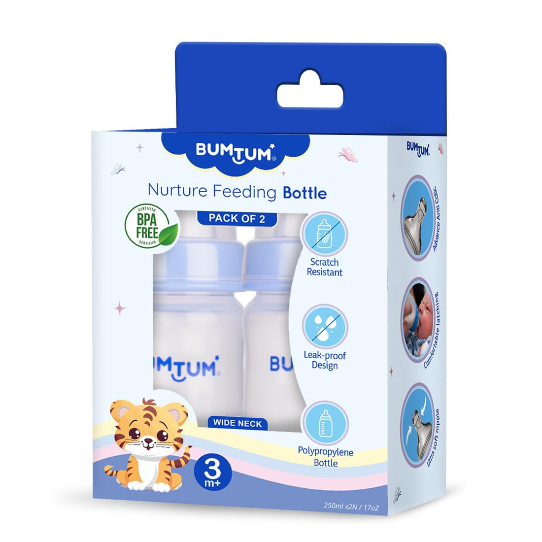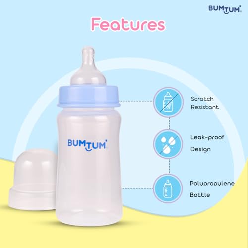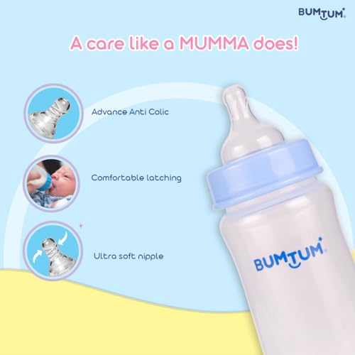 Bumtum Nurture Wide Neck Feeding Bottle Liquid Silicone Teat with Advanced Anti-Colic Valve - 250 Ml - (Pack of 2)