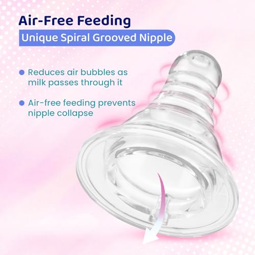 • Air Free Feeding: Spiral grooved nipple helps minimize air bubbles as the milk passes through it resulting in an air free feeding and continuous milk flow for the baby.