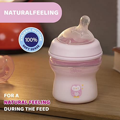 Chicco Natural Feeling 150ml Baby Milk Feeding Bottle with Wide Neck, Anti-Colic for Easy Milk Flow, for Babies & Toddlers 0m+ (Pink)