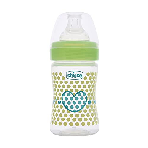 Chicco Well-Being Baby Feeding Bottle, 150ml, 0+ Months | Advanced Anti-Colic Nipple | Soft Silicon Teat | Wide Neck, Anti-Drip Bottle |BPA Free (Green)