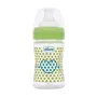 Chicco Well-Being Feeding bottles are especially designed to provide the baby with a comfortable and relaxed feeding experience. To give baby the natural feeding experience Well-Being feeding bottle comes with an advanced teat i.e. Physio teat whose shape has been inspired from the shape of the motherâs nipple to promote the babyâs natural sucking movement. The anti-colic valve situated at the base of the teat helps to prevent the ingestion of air and promotes a constant flow of milk thus reducing the risk of colic regurgitation hiccups or any discomfort to the baby. The symmetrical elongated and flattened shape of the Physio teat that mimics the motherâs nipple fits perfectly to the babyâs mouth and promotes the physiological movement of babyâs tongue. Making it more preferable for babies the soft and hygienic silicone teat gives a soothing and pleasant feel to the baby helping in easy transition between breastfeeding and bottle feeding and vice-versa. The ergonomic shape of the bottle is easy to hold and grip even by babyâs little hands. Chicco Well Being Bottle is made with high-quality BPA-free polypropylene material that ensures maximum protection and hygiene. For parentâs ease the bottle has a wide neck design which provides easy and quick filling and is effortless to wash. Drip poof cap and bottle gear ensure safe closure and no leakage from the bottle. Easy to clean the Chicco Well-Being baby bottles are available in beautiful colours & decorations and are ideal for babyâs everyday feeding routine.