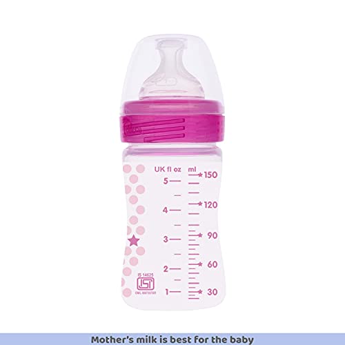 Chicco Well-Being Baby Feeding Bottle, 150ml, 0+ Months | Advanced Anti-Colic Nipple | Soft Silicon Teat | Wide Neck, Anti-Drip Bottle |BPA Free (Pink)