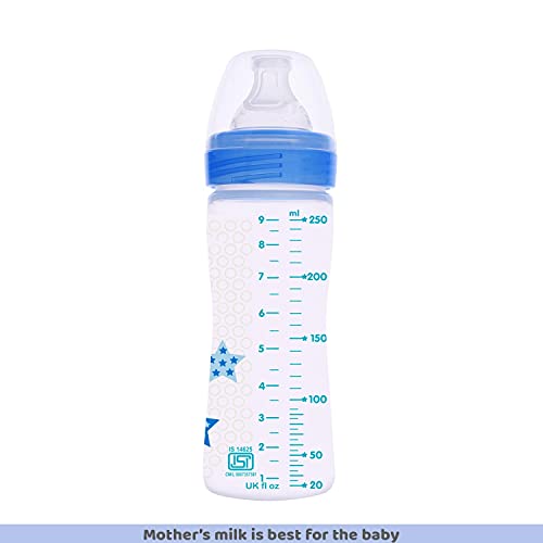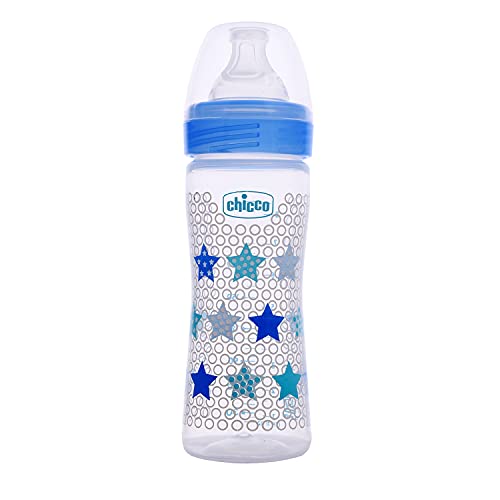 Chicco Well-Being Baby Feeding Bottle, 250ml, 2+ Months | Advanced Anti-Colic Nipple | Soft Silicon Teat | Wide Neck, Anti-Drip Bottle |BPA Free (Blue)