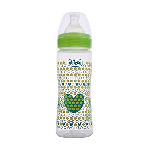 Aminoter Chicco Well-Being Baby Feeding Bottle, 330Ml, 4+ Months | Advanced Anti-Colic Nipple | Soft Silicon Teat | Wide Neck, Anti-Drip Bottle |Bpa Free (Green)