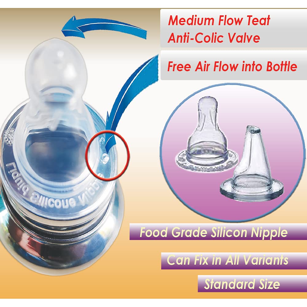 Anti Colic Silicone Nipple 304 Grade Stainless Steel No Joints