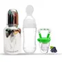 GOODMUNCHKINS Stainless Steel Baby Feeding Bottle - Silicon Food Feeder Silicone Spoon Feeder makes baby feeding easy for Parents. Ideal for 6 months and up babies this all-in-one feeder makes it a lot quicker and easier to feed a fussy baby. Baby Spoon Feeder has a stand-up design for convenience and hygiene.The Baby Feeder spoon and bottle are made of food-grade silicone Soft enough to touch babies' mouth. Clean the Silicone Spoon Feeder before use all parts can be sterilized or boiled in water for 3 to 5 minutes. A convenient way to feed your baby first pureed foods and cereals and help make feeding time more easier and less messy. Gently squeeze the Spoon Feeding Bottle until the desired amount of food collects onto the spoon to feed the baby.