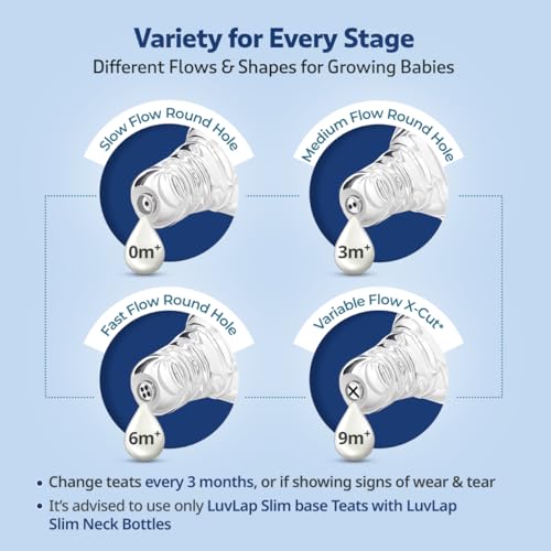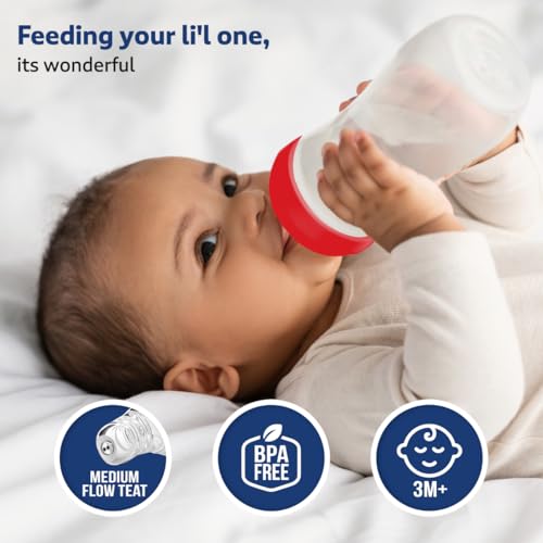 LuvLap Essential Feeding Bottles are ergonomically designed to be easily held while feeding the baby. All LuvLap bottles are 100% BPA free and fully sterilizable. The teats are 100% Liquid Silicone and have an anti-colic valve that vents air into the bottle preventing any air from entering the babys tummy. The teat has spiral grooves at the tip which encourage peristaltic suckling and help the baby get a comfortable latch. The grooved teats and superior silicone quality ensure no nipple collapse helping in an uninterrupted feed. With the LuvLap Essential Feeding Bottles at your side your babys feed will always be a comfortable one