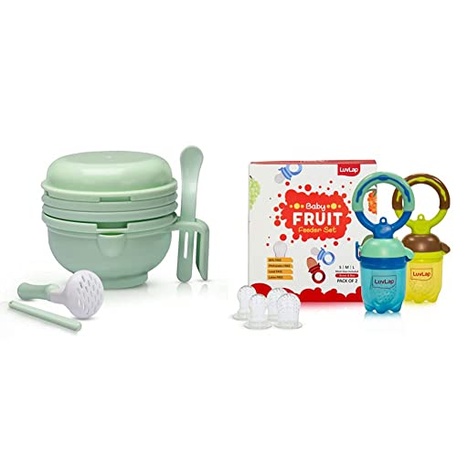 LuvLap 9 in 1 Baby Food Masher Mill & Baby Food and Fruit Feeder, Set of 9