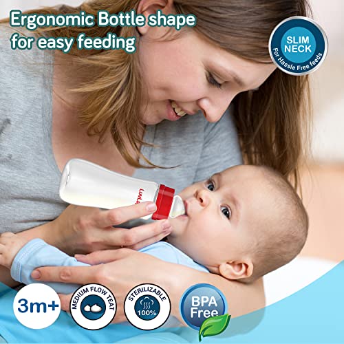 LuvLap Anti-Colic Slim/Regular Neck Essential Baby Feeding Bottle, 250ml & Tiny Love Heat Sensitive Baby Feeding Spoons Set, Blue & LuvLap Paraben Free Wipes for Baby Skin, 72 Wipes with Lid Pack