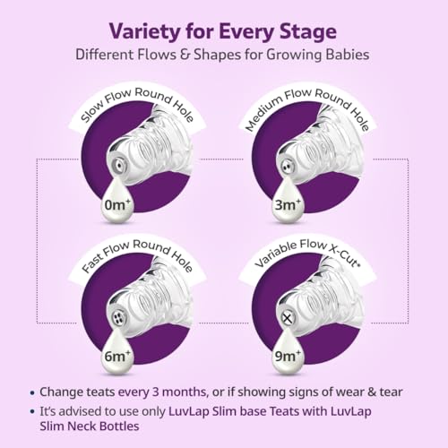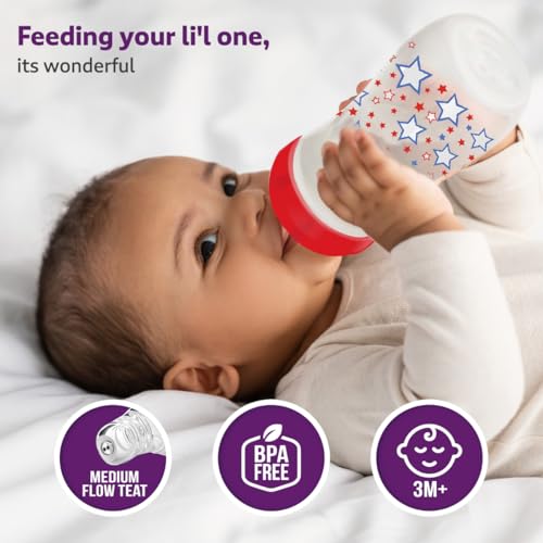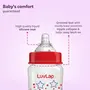LuvLap Natura Flow Feeding Bottles are ergonomically designed to be easily held while feeding the baby. All LuvLap bottles are 100% BPA free and fully sterilizable. The teats are 100% Liquid Silicone and have an anti-colic valve that vents air into the bottle preventing any air from entering the babys tummy. The teat has grooves at the tip which encourage peristaltic suckling while the wide base helps the baby get a natural latch similar to that on the mothers breast. This helps easy transition between breastfeeding & bottle feeding. The grooved teats and superior silicone quality ensure no nipple collapse helping in an uninterrupted feed.