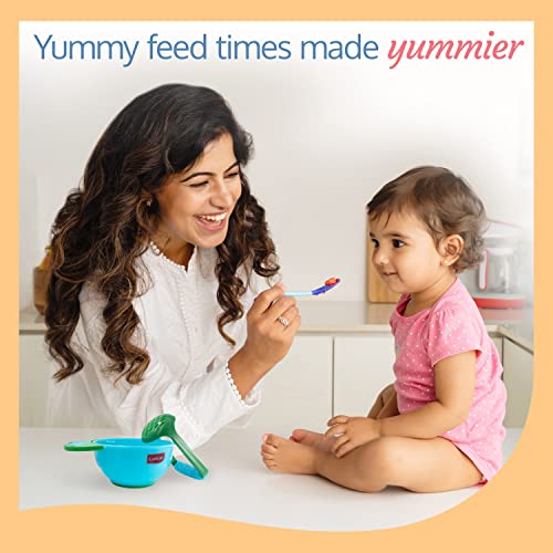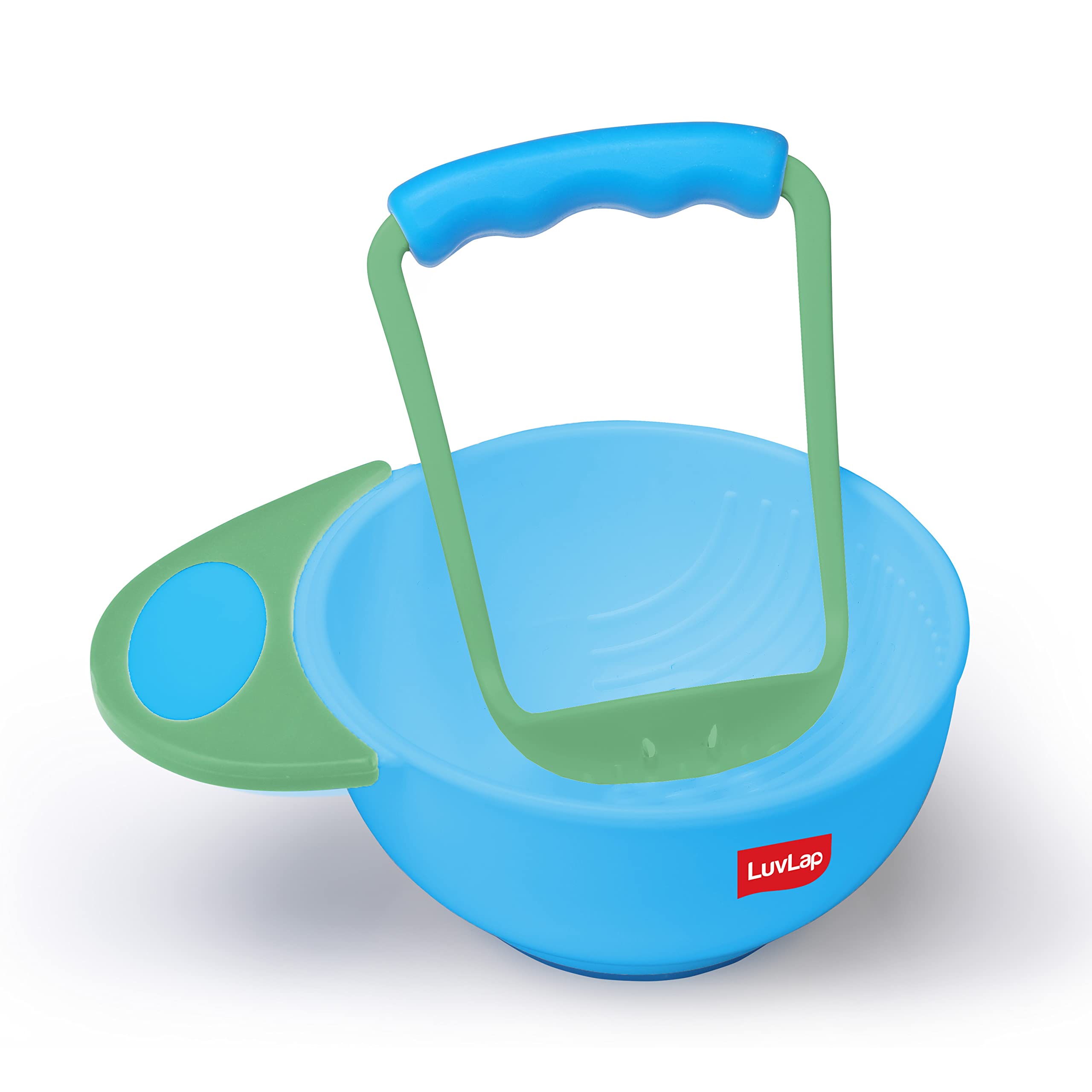 LuvLap Baby Food Grinding Cum Feeding Bowl, Portable Baby Food Masher & Serving Bowl for Baby weaning Food Preparation (Green & Blue)