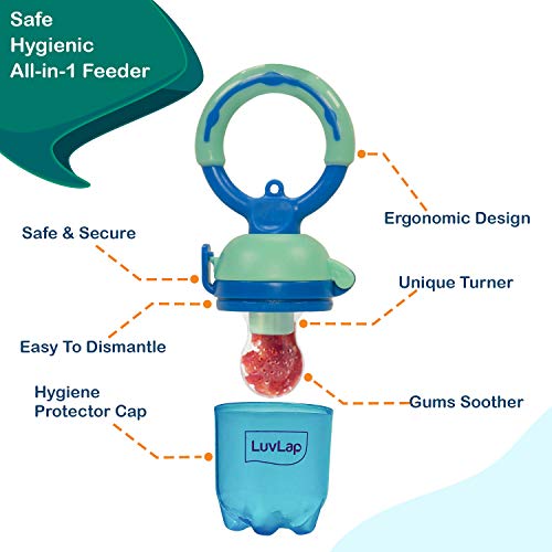 LuvLap Feeding Spoon with Squeezy food Grade Silicone Feeder bottle For Infant Baby 90ml BPA FreeBlueSoft Silicone food feeding bottle with spoon can be used to feed puries juice milk or water to babies. Helps in easy transition. Effortless one hand feeding. Dust cover and disk make it easy to keep and carry.LuvLap Baby Food and Fruit Feeder Twin Pack with Three Feeder Sack Sizes BPA Free Brown and BlueLuvLap Baby food and fruit feeder twin packs are availble in attractive colors ergonomic designs and makes baby's introduction to solid food and feeding to weaning babies an easiser job. The pack contains 3 different sizes of feeder sack to meet the growing consumption need of the babies