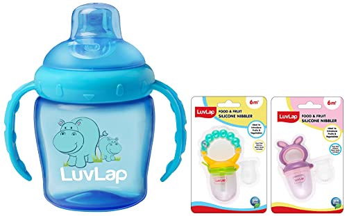 LuvLap Hippo Sipper BlueLuvLap Hippo Spout Sippers are meant for babies' of 6 month + age. The sipper comes with an intelligent spout with touch flo valve which ensures zero spillage. The sipper is made up of BPA free plastic.LuvLap Bunny Food & fruit nibblerFruit nibbler and teething toy to provide gentle relief to gums. Serves dual purpose of feeding fruit and vegetables to babies and can also be used as a teether. Can be filled with chilled fruits/vegetables to provide added relief. Made with bpa free food grade plastic and soft silicone it comes in attractive handle designs to EN gage the baby and is easy to hold and nibble upon.LuvLap Pearly Food & Fruit NibblerFruit nibbler and teething toy to provide gentle relief to gums. Serves dual purpose of feeding fruit and vegetables to babies and can also be used as a teether. Can be filled with chilled fruits/vegetables to provide added relief. Made with bpa free food grade plastic and soft silicone it comes in attractive handle designs to EN gage the baby and is easy to hold and nibble upon