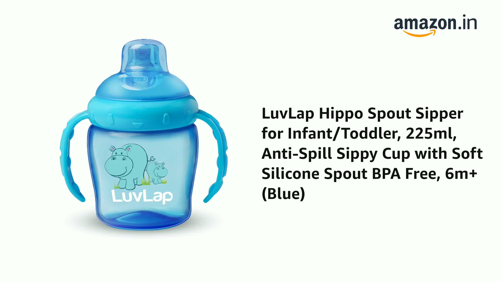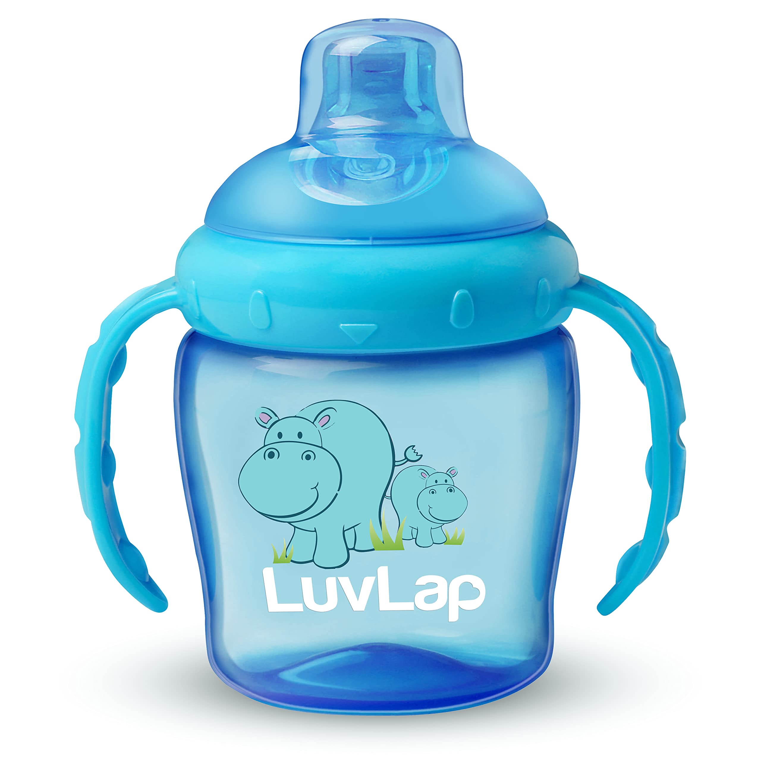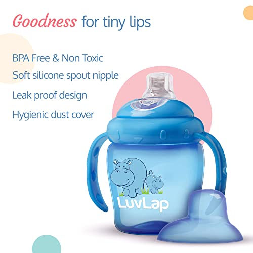 LuvLap Hippo Spout Sipper for Infant/Toddler, 225ml, Anti-Spill Sippy Cup with Soft Silicone Spout BPA Free, 6m+ (Blue)