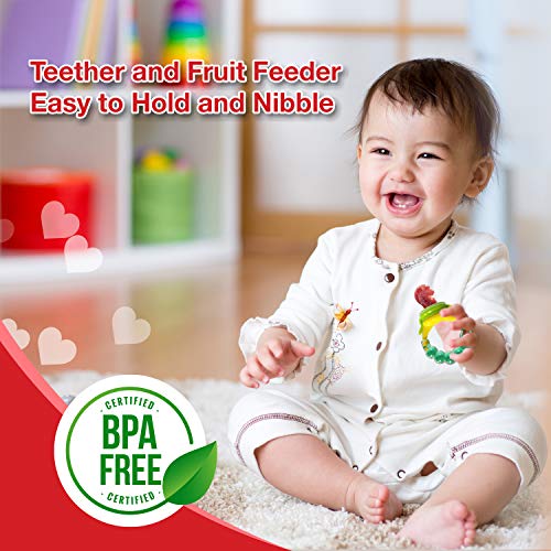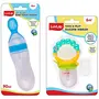 LuvLap Silicone Food/Fruit Nibbler with Extra Mesh Soft Pacifier/Feeder Teether for Infant Baby Infant Pearly Green BPA FreeFruit nibbler and teething toy to provide gentle relief to gums. Serves dual purpose of feeding fruit and vegetables to babies and can also be used as a teether. Can be filled with chilled fruits/vegetables to provide added relief. Made with bpa free food grade plastic and soft silicone it comes in attractive handle designs to EN gage the baby and is easy to hold and nibble upon.LuvLap Feeding Spoon with Squeezy food Grade Silicone Feeder bottle For Infant Baby 90ml BPA FreeBlueSoft Silicone food feeding bottle with spoon can be used to feed puries juice milk or water to babies. Helps in easy transition. Effortless one hand feeding. Dust cover and disk make it easy to keep and carry.