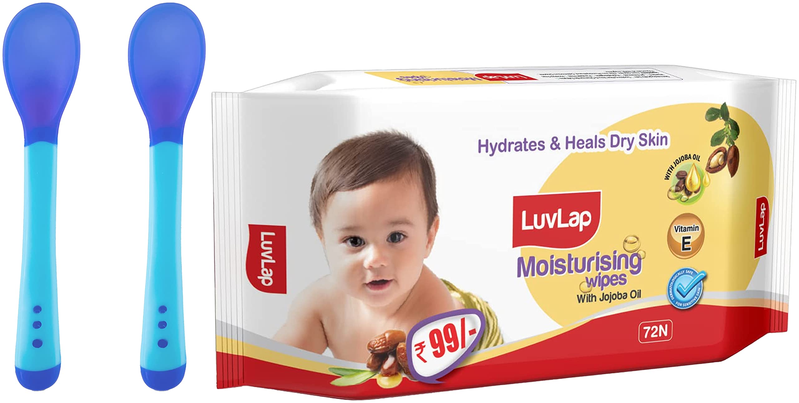 LuvLap Tiny Love Heat Sensitive Baby Feeding Spoons Set Food Grade PP Kids & Baby Spoon with Soft Silicone Tip Color changing BPA Free FDA Apporved 2 pcs BlueLifeÂs little stories bloom with coming of the little one in your life. It completes your life with many joys of parenthood. For baby itÂs the next best thing to being in your arms. Entertain your little one and give him or her a personal resting place. LuvlapÂs high chairs cots walkers and other indoor products will have the whole household floored by babyÂs happy smiles and chuckles. At Luvlap we endeavour to weave the little stories into our products with an emphasis on child safety and enrichment of features. So that your little one gets the comfort thatÂs next only to the warmth of your lap. Conceived with care and made using the latest marvels of science all Luvlap products undergo multiple quality checks before they are dispatched to the stores. The products are available at all leading baby gear and online stores and conform to the european standards.LuvLap wipes for baby skin with Jojoba Oil Paraben Free Fragrance Free pH Balanced Dermatologically Safe Baby Wipes Rich in Vitamin E Aloe vera & chamomile extract 72 WipesLuvLap Moisturizing Baby Wipes with aloe vera are the perfect wipes for your baby's delicate skin. Enriched with the goodness of jojoba oil they are completely free of alcohol and harmful parabens. After all your baby's safety is our prime concern.