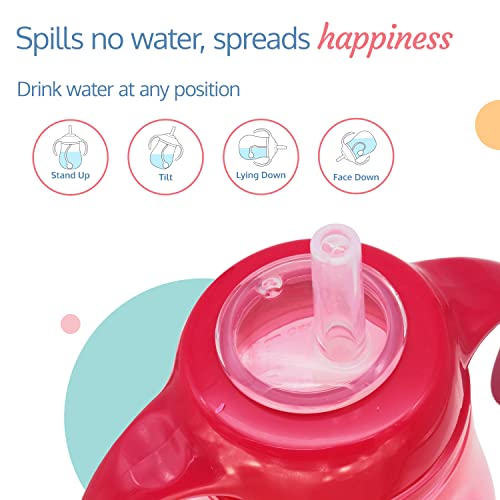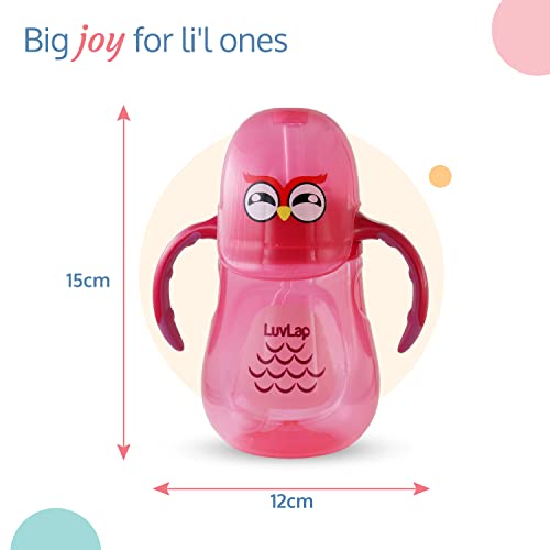 LuvLap wise owl straw sipper comes with a spill proof weighted straw. Weighted straw allows child to drink at any angle easily. Ergonomically designed easy grip handles are specially designed as per requirement of small baby hands.