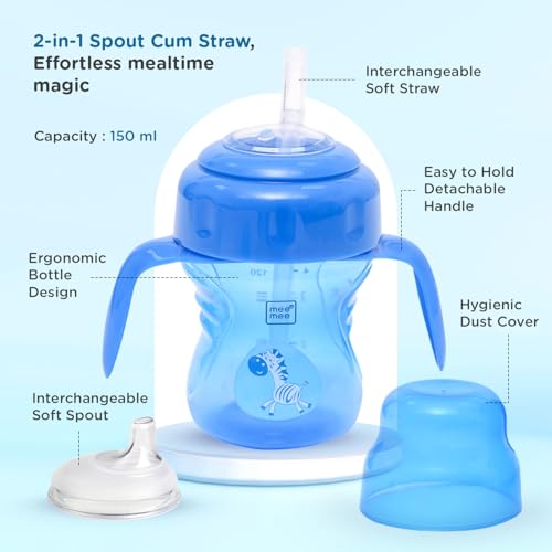 Mee Mee Anti Spill, Interchangeable Sipper/Sippy Cup 150ml with Soft Silicone Spout and Straw BPA Free, 6m+ (Blue)