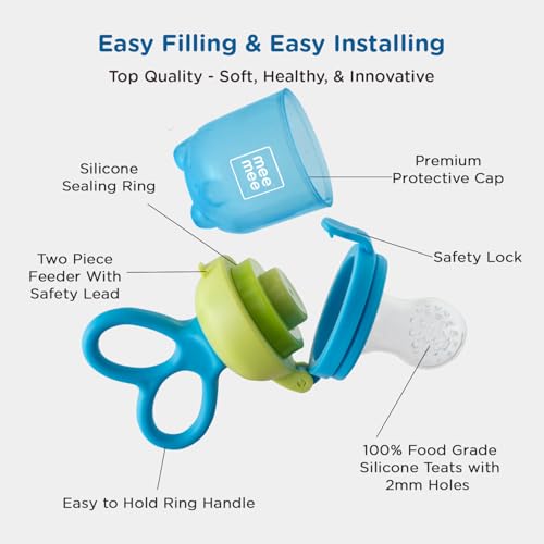 Mee Mee Advanced Fruit & Food Nutritional Baby Feeder | Safe and BPA-Free Solution | Ideal for Babies 6 to 12 Months Old | Enhance Feeding Experience with Baby Grip Feeder (Blue)
