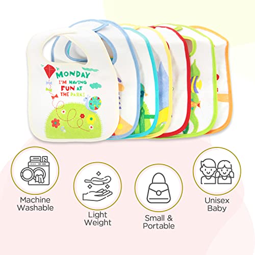 HomeBabyFeedingFeeding AccessoriesMee Mee Baby Cotton Apron/Feeding Bibs Washable|Multi Print|Waterproof Baby Bib Set for 0-3, 6-12 Months,New Born, 1-2 Years (Pack of 7, Multicolor)
