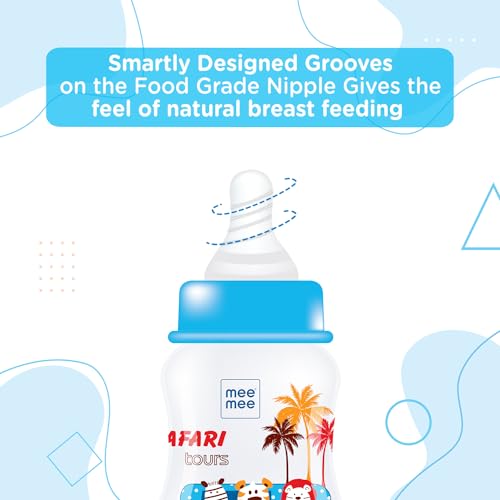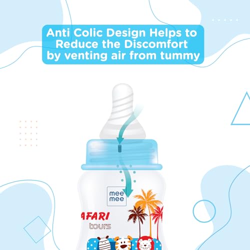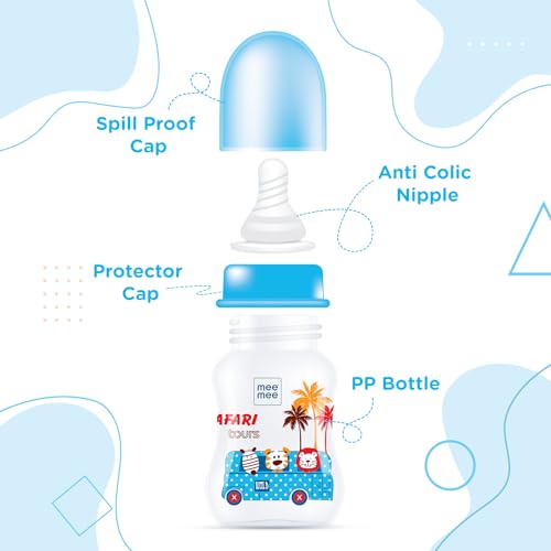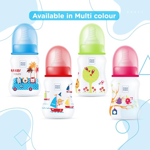 HomeBabyFeedingFeeding AccessoriesMee Mee Baby Feeding Bottle 125ml |BPA-Free Baby Milk Bottle with Eazy Flo Technology, Anti-Colic Valve, Non Toxic and Ergonomic Design for New Born/Infants/Toddler Upto 3 Years (Blue, Pack of 2)
