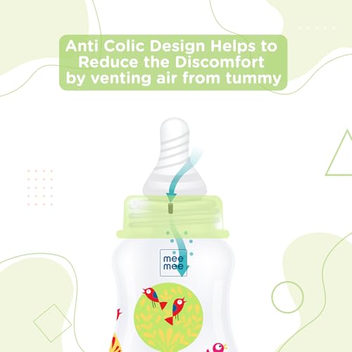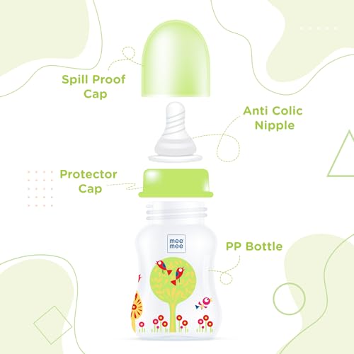 HomeBabyFeedingFeeding AccessoriesMee Mee Baby Feeding Bottle 125ml |BPA-Free Baby Milk Bottle with Eazy Flo Technology, Anti-Colic Valve, Non Toxic and Ergonomic Design for New Born/Infants/Toddler Upto 3 Years (Green,Pack of 2)