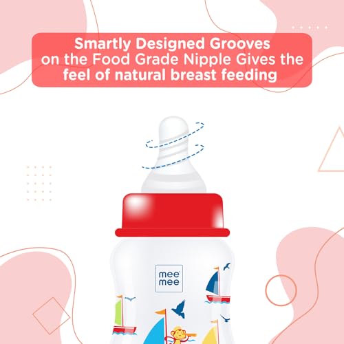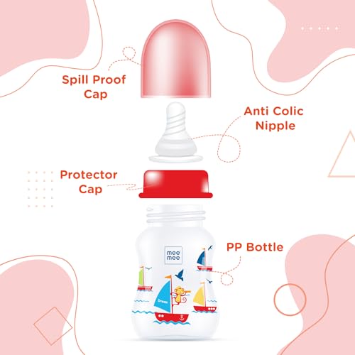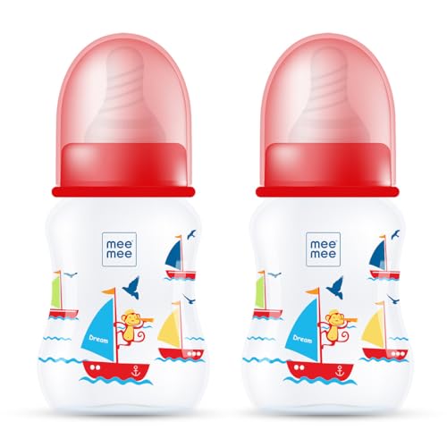 HomeBabyFeedingFeeding AccessoriesMee Mee Baby Feeding Bottle 125ml |BPA-Free Baby Milk Bottle with Eazy Flo Technology, Anti-Colic Valve, Non Toxic and Ergonomic Design for New Born/Infants/Toddler Upto 3 Years (Red, Pack of 2)