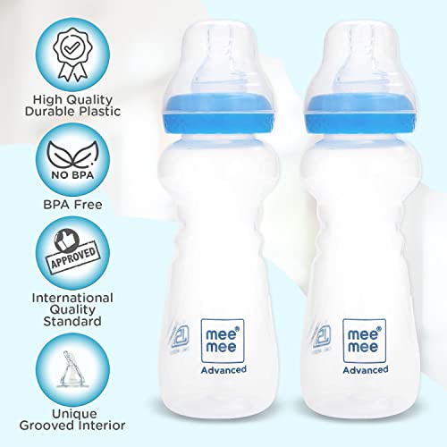 HomeBabyFeedingFeeding AccessoriesMee Mee Baby Feeding Bottle 250ml |BPA-Free Baby Milk Bottle with Eazy Flo Technology, Anti-Colic Valve, Non Toxic and Easy to Hold Grooved Design for New Born/Infants/Toddler Upto 3 Years (Blue, Pack of 2)