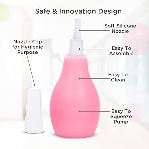Gently sucks out the mucus build-up inside baby's nostrils without causing discomfort to baby.