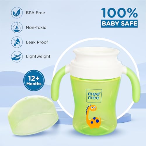 HomeBabyFeedingFeeding AccessoriesMee Mee Baby Trainer Sippy Cup | Soft Spout, Leakproof Sipper for Toddlers | Dual Handle for Easy Grip | Non -Toxic, Lightweight & BPA Free, Green (240 Ml)