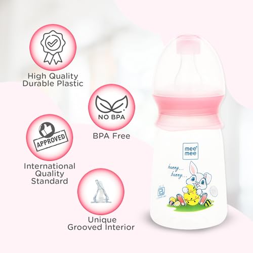 Mee Mee BPA-Free Baby Feeding Bottle, Eazy Flo Technology, Anti-Colic Valve, 0-3 Years (Pink, 130 ML (Pack of 1))