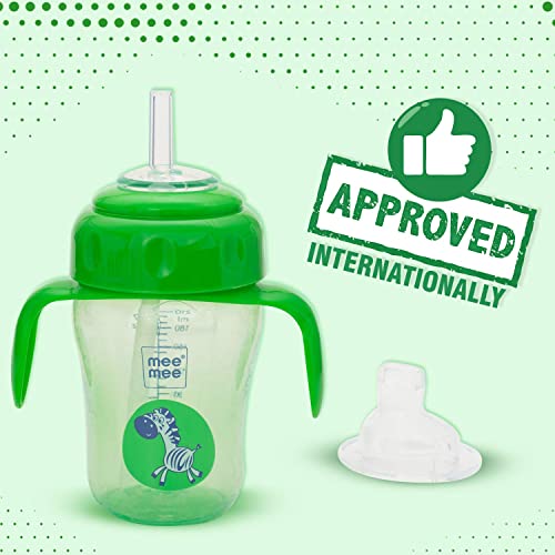 Mee Mee Baby Gentle Wet Wipes with Aloe Vera extracts |72 pcs| Pack of 5Babies have extremely soft and delicate skin and even if they are exposed to a moment of pollution or dirt it can cause multiple damage to their skin. Mee Mee best known for creating easy and convenient baby products has come up with wet wipes. these wipes help you clean your little one easily soon after meals or while you are travelling in a public vehicle. Babies usually tend to play with water and often in the process they end up catching cold. But if these wipes are used then they would no more need to wash their hands in water unless they are eating with their own hands.Mee Mee BPA Free 2 in 1 Convertible Sipper Cup for Babies/Toddlers/Kids with Soft Spout & Straw/Anti-Leak/Detachable Handle (210 ml Green)Making the transition from feeding bottle to spout cup to straw sipping is an important one Mee Mee's 2-in-1 silicone training cup is designed to help your child gradually transit from feeding bottle too drinking thick liquids from spout cups to straw sippers and enjoy all kinds of liquids with more ease.