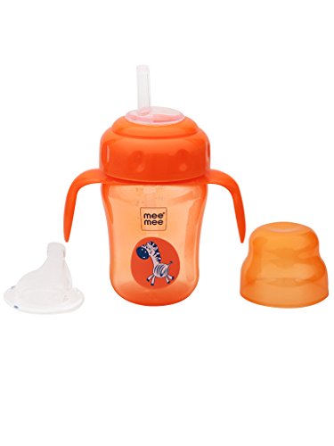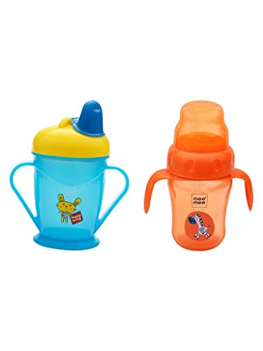Mee Mee Easy Grip Sipper Cup with Twin Handle (180 ml, Blue) and 2 in 1 Spout and Straw Sipper Cup (210ml, Orange)