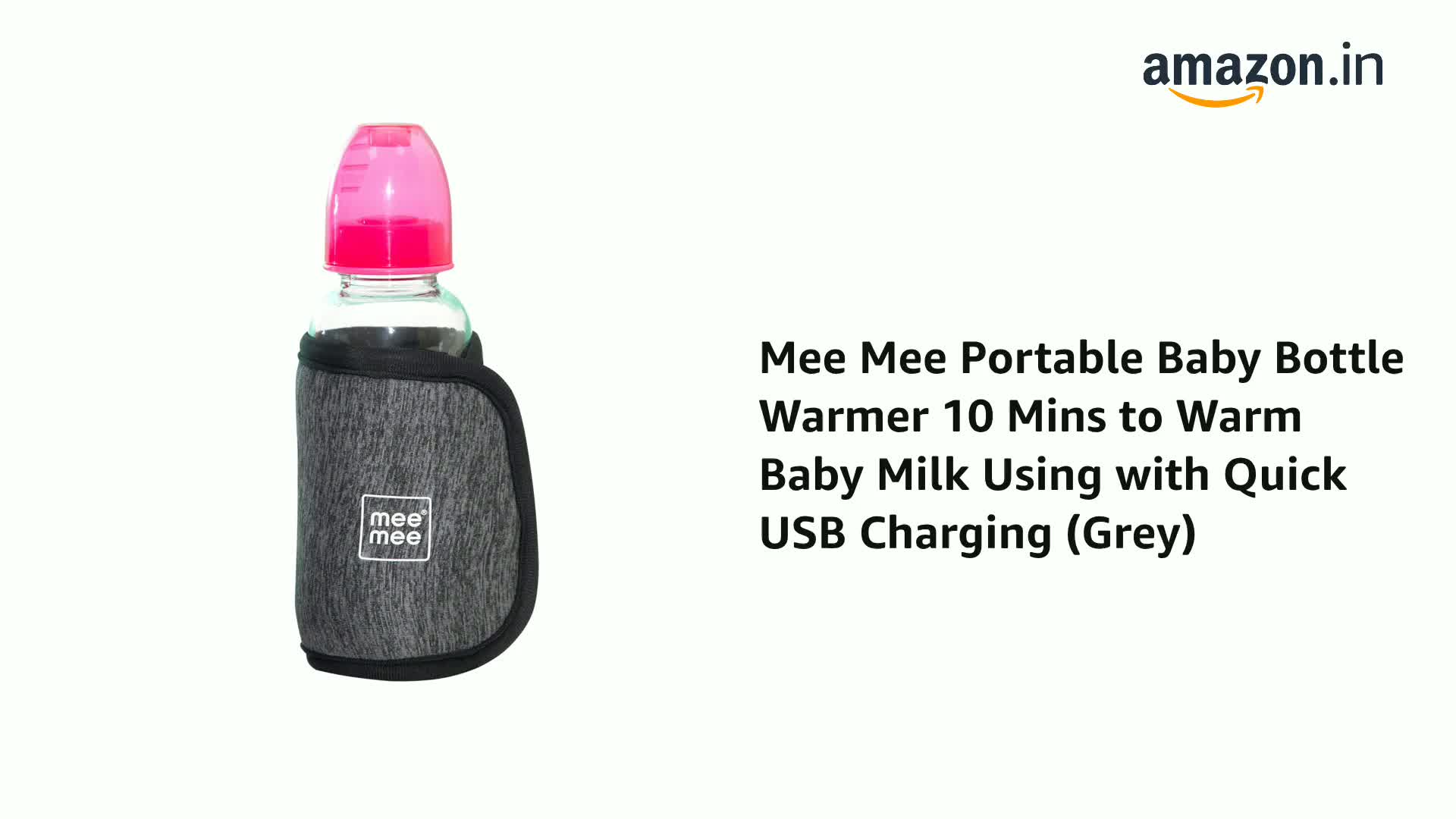 Mee Mee Portable Baby Bottle Warmer 10 Mins to Warm Baby Milk Using with Quick USB Charging (Grey)