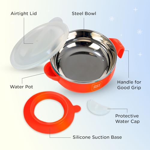 Mee Mee Stay Warm Baby Steel Bowl with Suction Base, Red(Pack of 1)