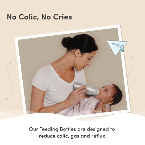 • ANTI COLIC: With an advanced anti-colic system our stainless steel feeding bottle has an easy flow neck design & prevents air bubbles from mixing with milk reducing gas colic pain and reflux in babies.