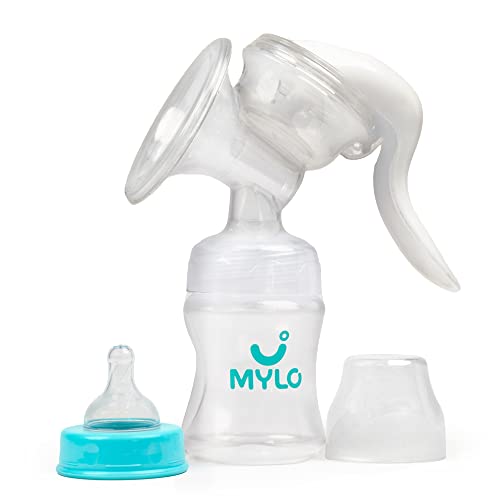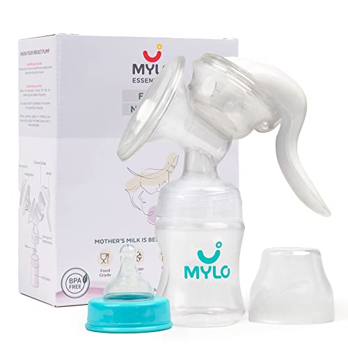 Mylo Essentials Manual Breast Pump (150ml) with Feeding Bottle (150ml) | Anti Colic & BPA Free Nurisng Set for Feeding Mothers | Compact, Lightweight, Easy to Clean & Carry
