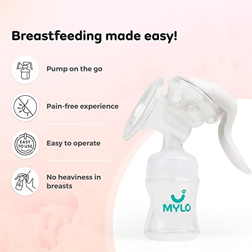 Mylo Essentials Manual Breast Pump (150ml) with Feeding Bottle (250ml) | Anti Colic & BPA Free Nurisng Set for Feeding Mothers | Compact, Lightweight, Easy to Clean & Carry