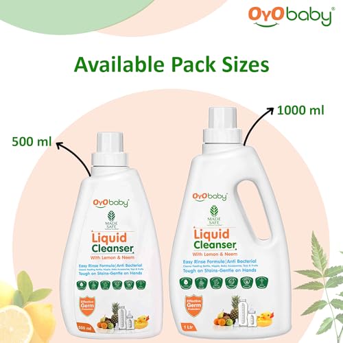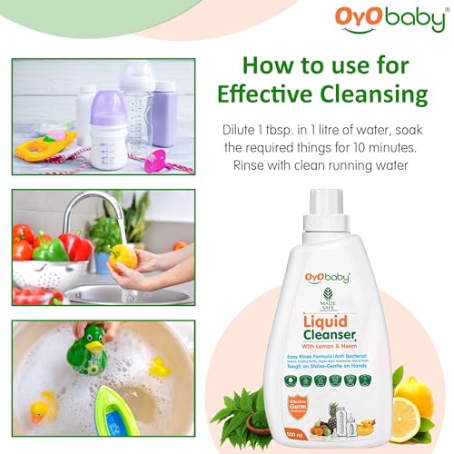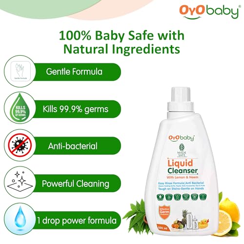 OYO BABY Baby Liquid Cleanser 1000ml | Anti-Bacterial, Kills 99.9% Germs | Cleanser for Bottles, Nipples, Accessories, Toys, Fruits & Vegetables | pH Balanced No Harsh Chemicals