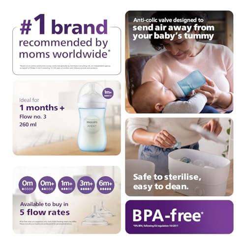 Philips Avent Blue Natural Baby Feeding Bottle | No.1 Brand Recommended by Moms Worldwide | Ideal for 1 months+| Natural Response Technology Mimics Breastfeeding | Uniquely Designed Nipple releases milk only when baby drinks | Pack of 1 | Blue | SCY903/21