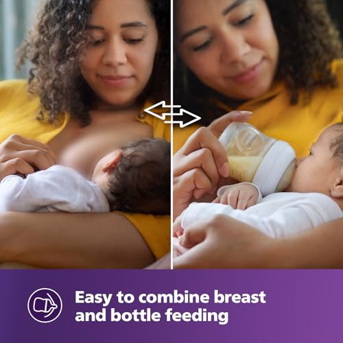 The wide breast-shaped teat promotes natural latch on similar to the breast making it easy for your baby to combine breast and bottle feeding. Its natural shape helps the baby to continue the same tongue movement used at the breast. Petals inside the teat increase softness and flexibility without teat collapse. Your baby will enjoy a more comfortable and contented feed. Innovative twin valve design reduces colic and discomfort by venting air into the bottle and not baby's tummy. This makes feeding comfortable for baby. Due to the unique shape the bottle is easy to hold and grip in any direction for maximum comfort even for baby's tiny hands. As a new parent your little one's health and well-being is your top-most priority. Rest assured you're giving baby the best--the Philips Avent Natural feeding bottle is made of BPA-free (following EU directive (2011/8/EU) material (polypropylene). Philips Avent products are compatible with one another and are easily interchangeable aiding the transition from your newborn to toddler. Bottles and teats can be used with the Philips Avent Comfort breast pump storage containers cups sterilizers and bottle warmer. The Natural feeding bottle is compatible with the majority of the Philips Avent range excluding the Classic bottles.