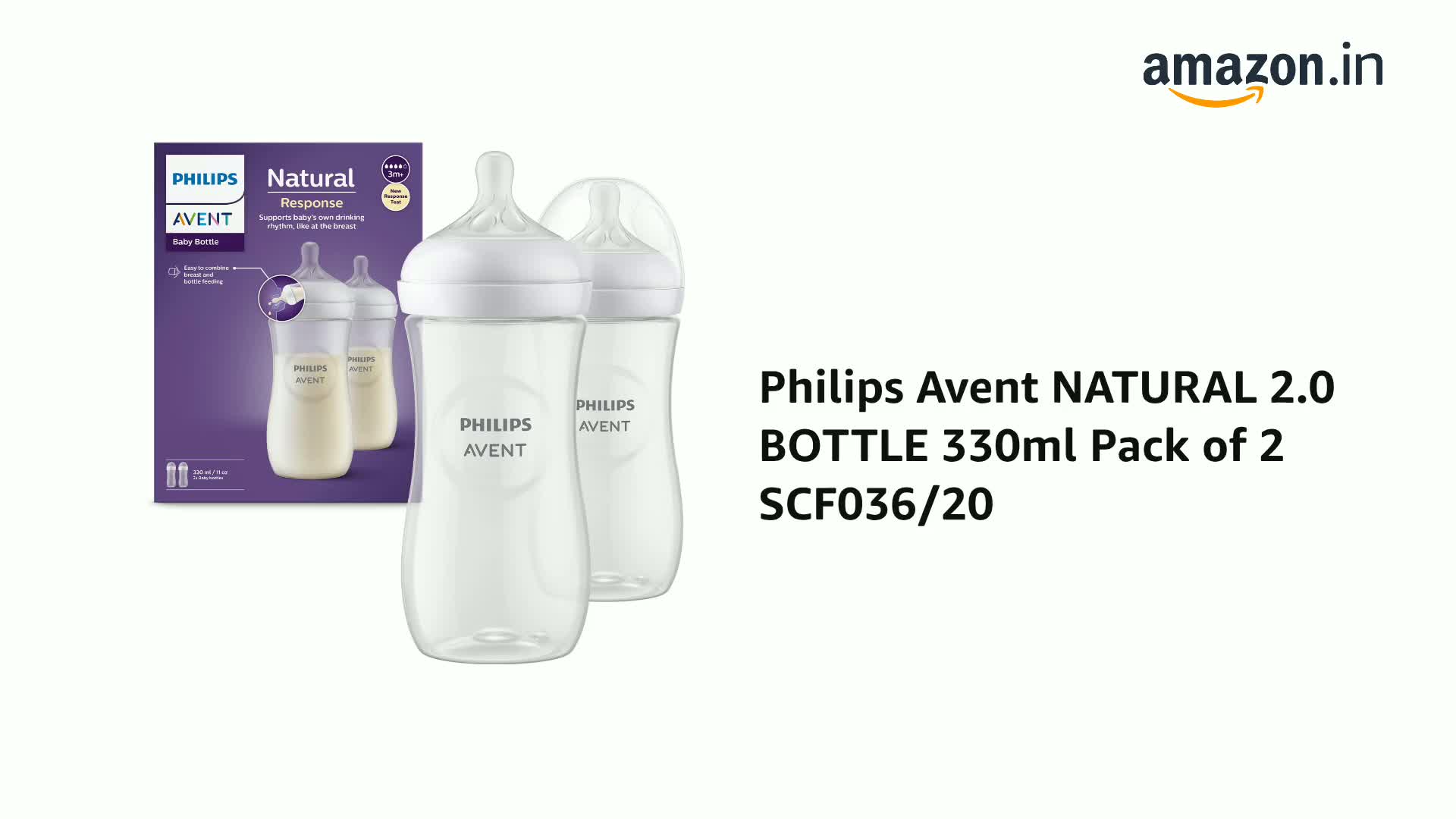Philips Avent NATURAL 2.0 BOTTLE 330ml Pack of 2 SCF036/20