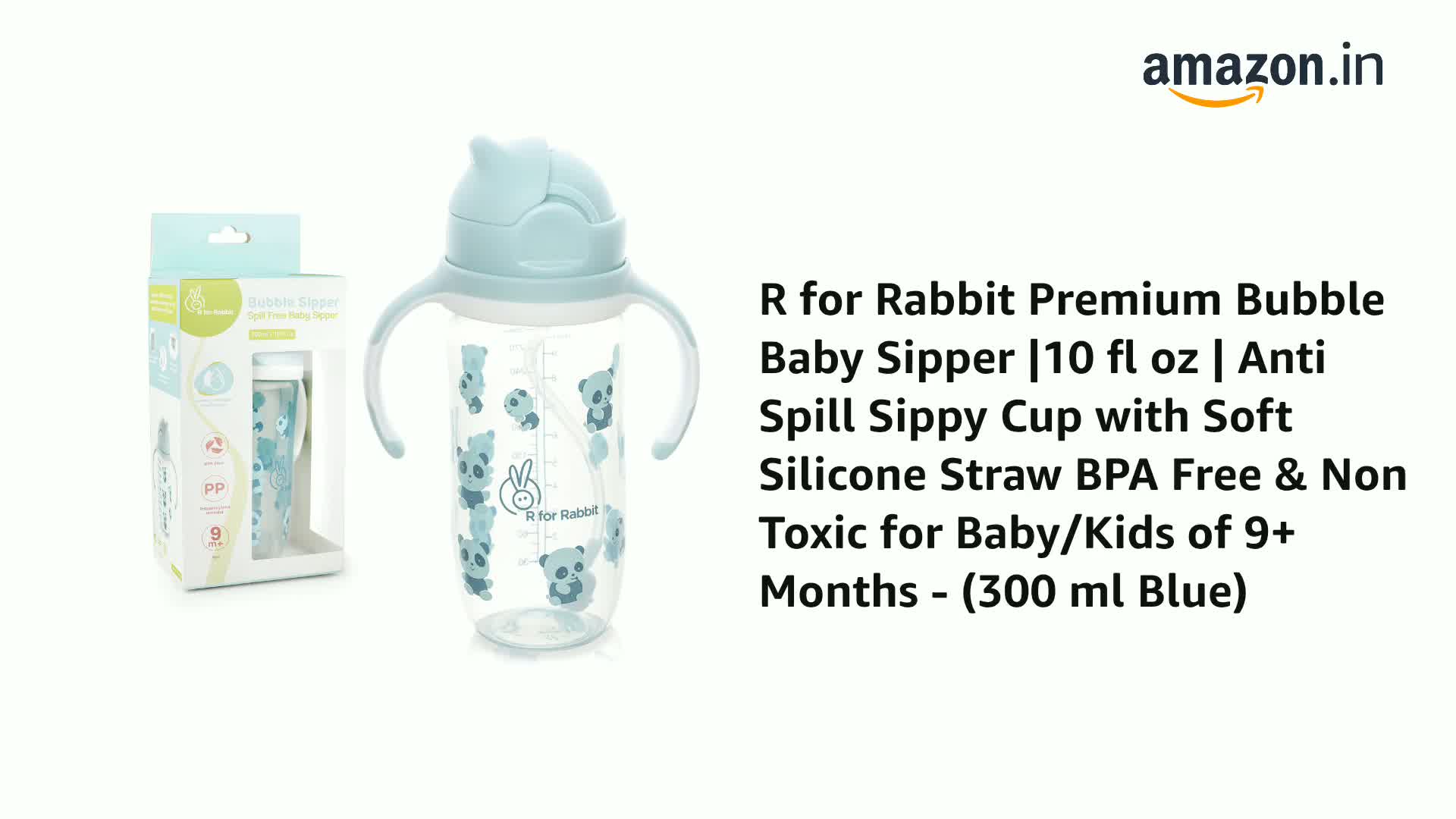 R for Rabbit Premium Bubble Baby Sipper |10 fl oz | Anti Spill Sippy Cup with Soft Silicone Straw BPA Free & Non Toxic for Baby/Kids of 9+ Months - (300 ml Blue)