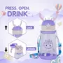 SHOPPOFOBIX Plastic Kids Water Bottle With Straw Water Bottle With Straw & Cartoon Design And Shoulder Strap For Students And Children Boy Girl 600 milliliter (Purple)