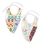 CONTENTS: Pack of 2 Reversible Apron Style Bibs. The waterproof apron style full coverage reversible cloth Bibs come in super cute prints on both sides & a breadcrumb catcher pocket for a non-messy feeding time.
