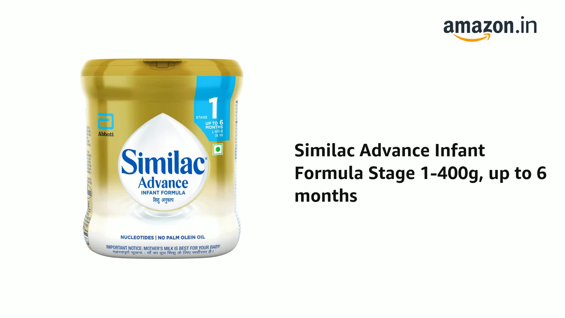 Similac Advance 1 is a spray dried stage 1 infant milk substitute for new born baby upto 6 months. Similac Advance is designed to support normal growth and development. It contains Essential fatty acids Vitamins and Minerals (such as Calcium and Iron) that are known to support healthy growth of the baby. Contains Neuro-nutrients such as Omega 3 and 6 fatty acids (Precursors of DHA & ARA) Choline Iron Taurine Iodine Folic Acid and Zinc that are known to support baby brain development. Also contains level and blend of nucleotides that is known to support baby developing immune system For over 85 years Similac from Abbott Nutrition has set the standards for science-based infant nutrition and has been nourishing millions of babies worldwide. Follow the suggested feeding schedule as given on pack. Standard reconstitution is one level scoop of powder for each 30 ml of water. Do not use fewer scoops than directed since diluted feeding will not provide adequate nutrients needed by your infant. Also do not use more scoops than directed since concentrated feed will not provide the water needed by your infant. Infant food/Infant milk substitute/Infant formula should be used only on the advice of a health worker as to the need for its use and the proper method of its use.