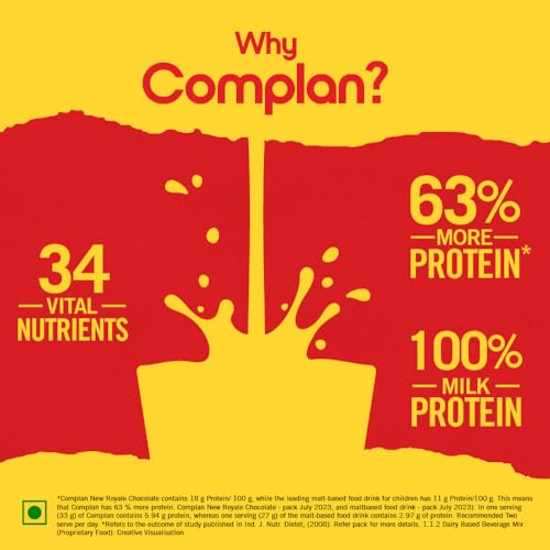 Complan is a Dairy-based Beverage Mix' a Nutrition drink powder scientifically designed to meet the nutritional needs of growing children. Its Creamy Classic Flavour is a nutritious drink with a delicious taste that your kid will enjoy. It provides essential nutrients including 100% milk protein vital for their development. Complan contains 63% more protein (per 100g and per serve basis) than regular Malt-based Food Drink powder. Its formulation with 34 key nutrients such as Vitamin D2 calcium Zinc etc. is designed to support overall growth and functioning. Complan is clinically proven to support 2X faster growth and supports memory and concentration. This nutrition drink for kids contains essential nutrients like iodine iron zinc etc. that are known to support brain development and functioning. The pro-immunity nutrients like Vitamin A Vitamin C etc. support immune function. Serve this delight twice a day (33g x 2) as a part of your child's balanced diet. It can be served in two delicious ways both as a hot drink and a cold drink. Give your child the Complan nutrition.