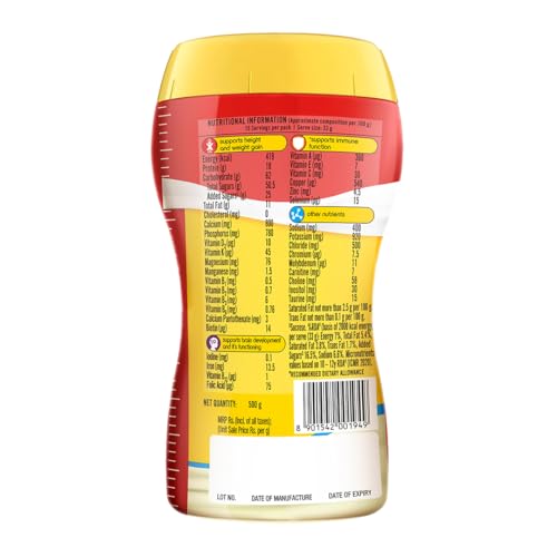 • HIGH IN PROTEIN: It contains 63% more protein than regular Malt-based Food Drink powder required for your child’s growing years. It provides essential nutrients including 100% milk protein vital for their development. Its formulation with 34 key nutrien