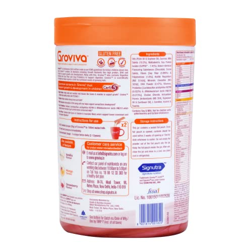 • Certi5 signature nutrients in Groviva are provided in quantities that support your child's growth & development cognitive & immune function and gut & bone health. Groviva is designed as per nutritional requirements provided by ICMR for children 2-12 years